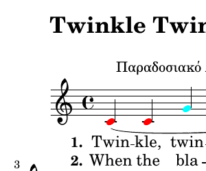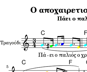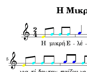 Το γνωστό παιδικό τραγούδι σε δίγραμμο. Καλό και για dictee.