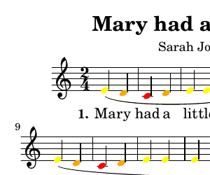 Πολλά μεταλλόφωνα είναι χρωματιστά (κοστίζουν περίπου 20 - 25€) και οι παρτιτούρες που βρίσκονται εδώ είναι χρωματιστές για μεταλλόφωνα, αν και βοηθούν γενικότερα. Νομίζω πως τα συνηθισμένα χρώματα είναι: Κόκκινο (ντο), πορτοκαλί (ρε), κίτρινο (μι), πράσινο (φα), γαλάζιο (σολ), μπλε (λα), μωβ (σι). Έχω τύχει σε μεταλλόφωνα όπου αντί το ΣΟΛ να είναι γαλάζιο και το ΛΑ μπλε, να είναι το ΣΟΛ μπλε και το ΛΑ γαλάζιο.