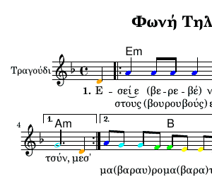 Εναρμονισμένο για δύο φωνές / όργανα από εμένα. © Μιχάλης Μιχαλούδης
